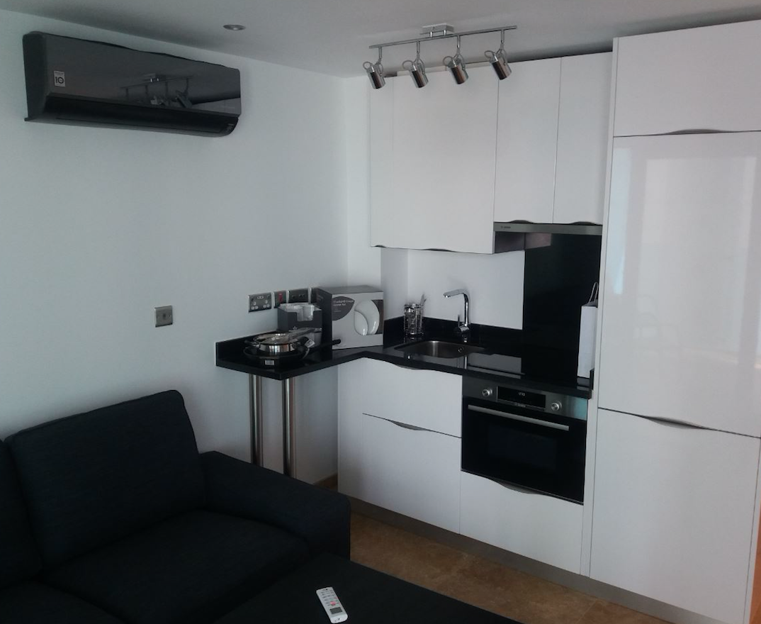 Studio to let in Ocean Spa Plaza. Set on a high floor, the property enjoys high quality specifications including a fully equipped kitchen, reverse cycle air-conditioning, electric blinds, hardwood flooring in the living room and marble finishes in the bathroom. It further enjoys a 10sqm private terrace and panoramic views to the east (Rock) and north (Spain). Benefits from access to the communal swimming pool, gardens and the exclusive Sky Spa. Furnished. No pets allowed.
